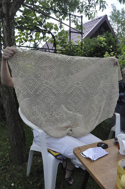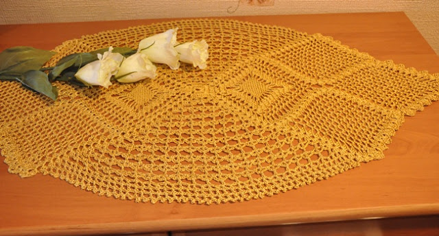 Przy ostatnich moich zakupach dostałam jeden samotny kłębek miodowego kordonka Garden - potrzebny był mi do skończenia tej oto serwety . Jak zwykle kordonek połączyłam z nitką Altin Basak Kirlangnic .Serweta jest wtedy grubsza i nie wymaga usztywniania .