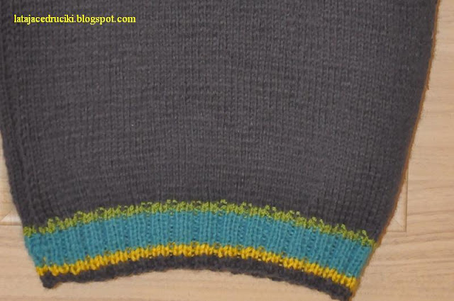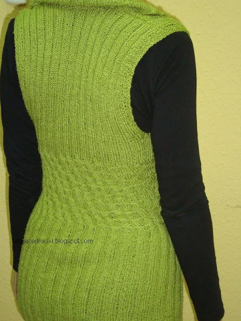 Żeby nie było za ciemno zrobiłam kolorowy ściągacz , który rozjaśnił gładkie plecy.