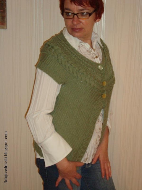 Obwarzanek jest kamizelką robioną jakiś czas temu ,ale że zieleń znowu panuje / doniesienia z ostatnich katalogów / to ją wyciągnęłam .