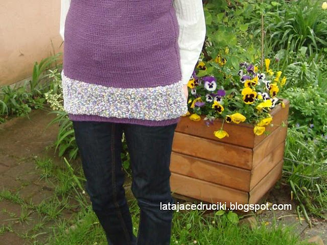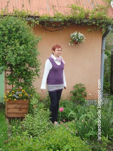 Uff nareszcie poprawiona . A zacznę od początku - wiosną tamtego roku zrobiłam tuniko - kamizelkę . Poszłam się obfotografować i jak zobaczyłam efekt końcowy ,to sprułam kamizelkę w całości .