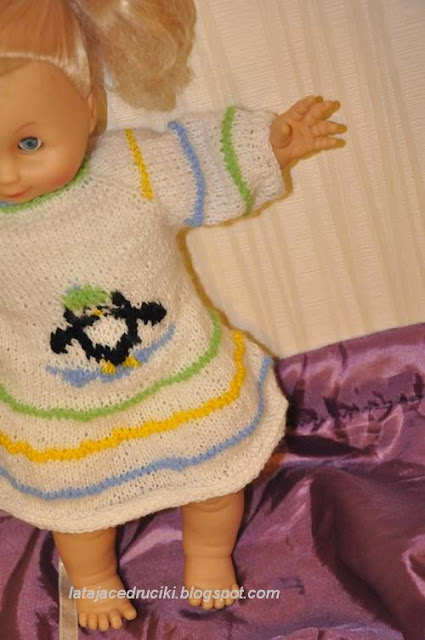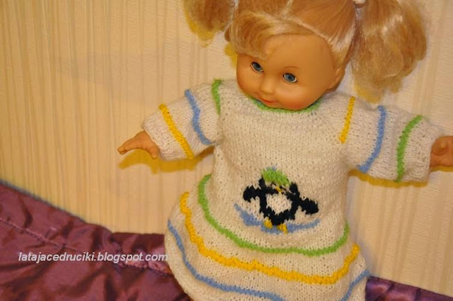 Biała sukienka z pingwinkiem zrobiona migiem jako dodatek do Szlachetnej Paczki .