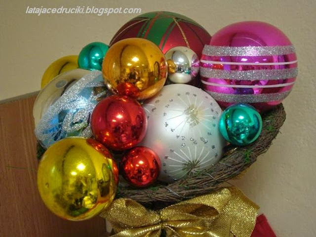A w pracy powstał taki oto stroik - czyli zbieramy niepotrzebne bombki .