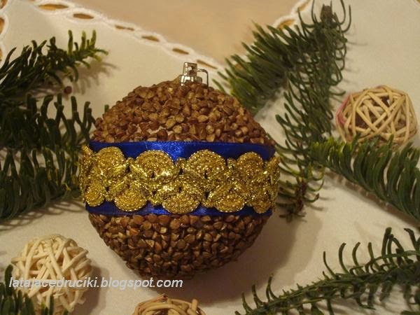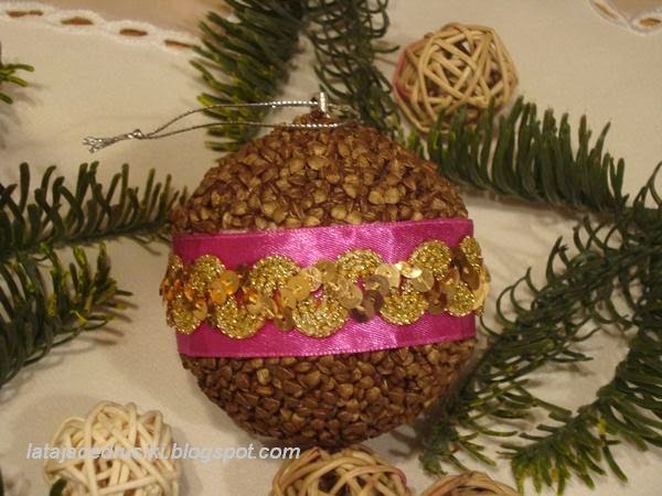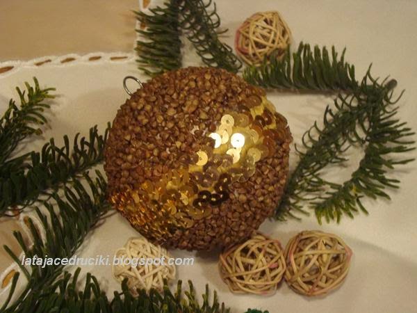Bombki z kaszy gryczanej powstały pod wpływem chwili ,gdy wzięłam do ręki woreczek kaszy żeby ugotować obiad .