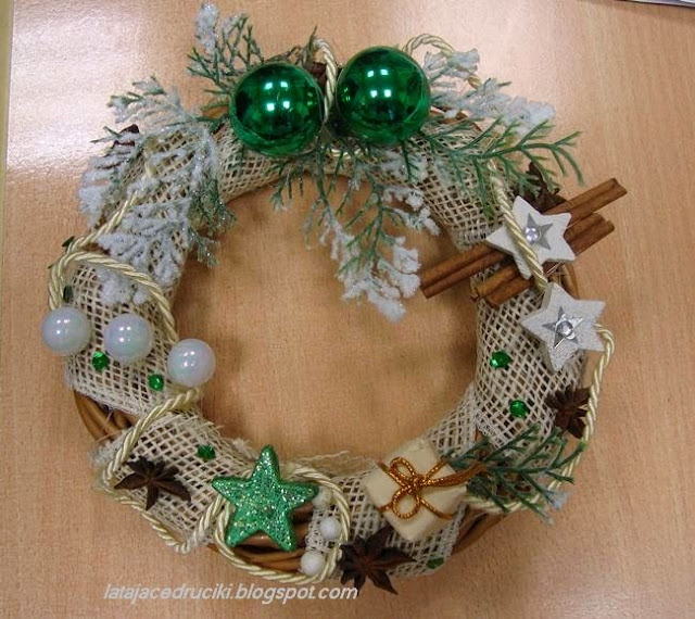 I jeszcze wpadł pomysł na wianek .Prawie wszystkie dekoracje to prezenty i siłą rzeczy nie mogły być wcześniej prezentowane !