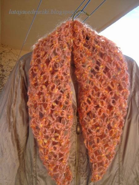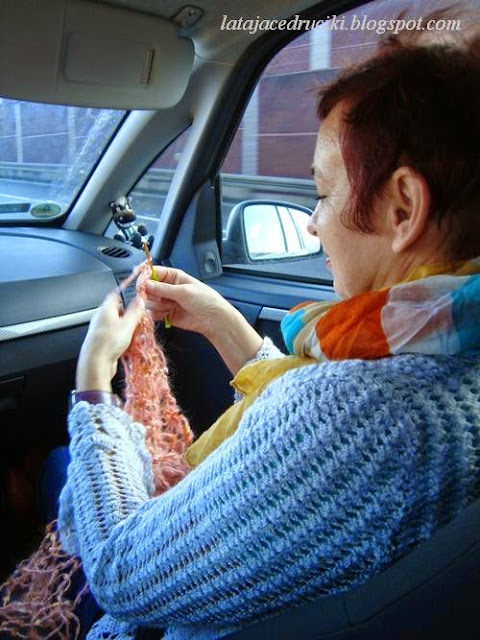 W podróży każda chwila wykorzystana - powstaje szalik dziękuję Beatko za naukę wzoru .