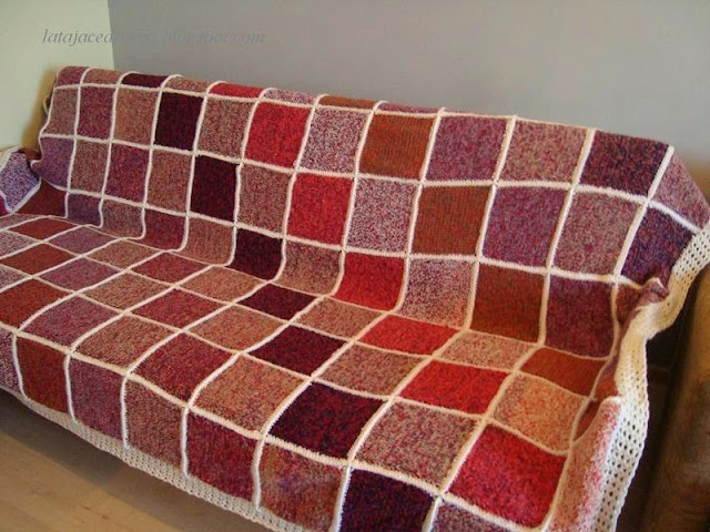 Potrzebna była narzuta - pled na łóżko . Poszperałam , poszukałam i wyciągnęłam same starocie , z których wcześniej nie wiedziałam co zrobić .