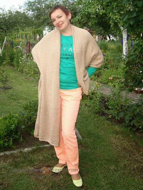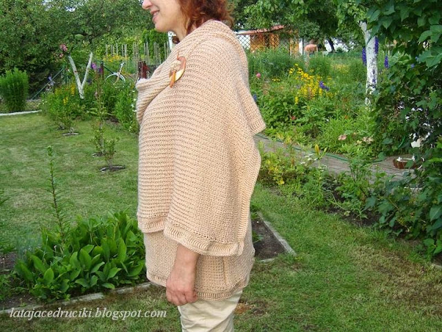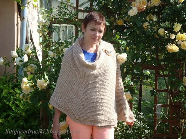 Pomyślicie ponczo jak ponczo - no tak ale moje ma jeden rękaw , czyli jest to połączenie swetra z szalem .