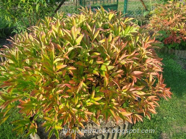Czy to już jesień ? Nie chcę , nie wyrażam zgody , protestuję !!!!Ja chcę ciepełka ,słoneczka , może nie takiego afrykańskiego ale ciepełka . Teraz kiedy mam miejsce do odpoczynku , aura mówi mi dość siedzenia na dworze . Nie to niemożliwe , jeszcze troszkę , troszeczkę ciepełka . Może z tydzień , dwa , trzy ,a potem niech pada i pada . No bo jak tu nie podziwiać tak pięknie przebarwiających się piwonii .