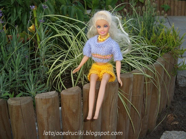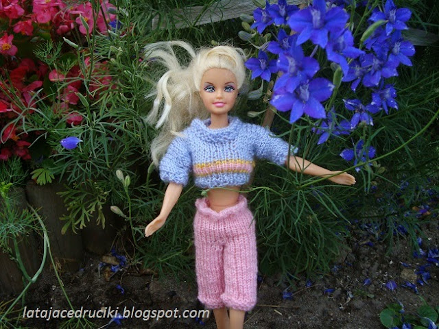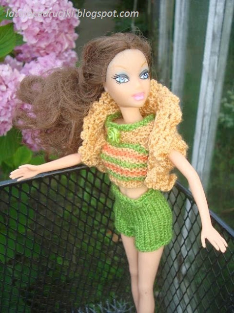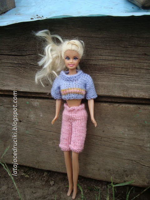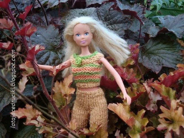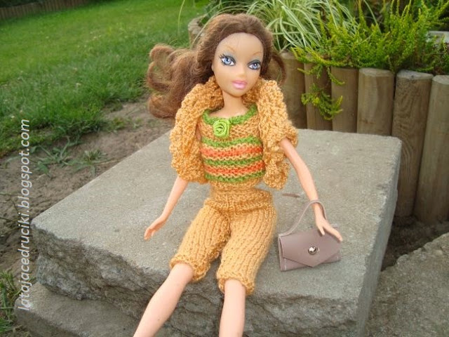 Tym razem powstał komplecik w spokojnym kolorze . Można powiedzieć ,że strój dla lalki jest wręcz mdły , ale to tylko pozory .