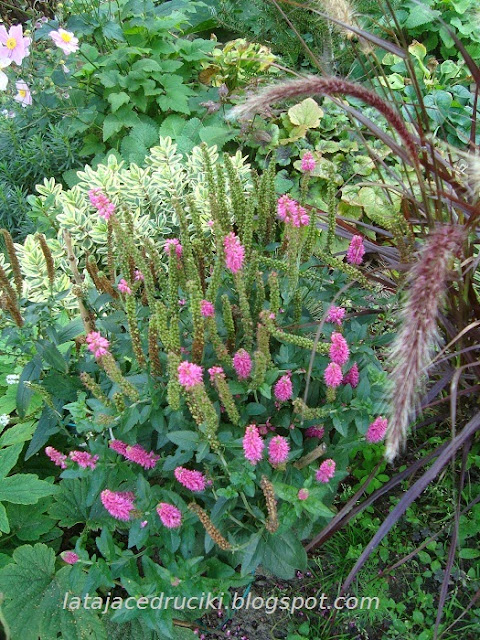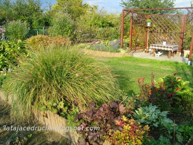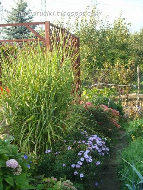 Kolejna trawa i inne kwiatki spokojnie czekają na tymczasowej rabatce .