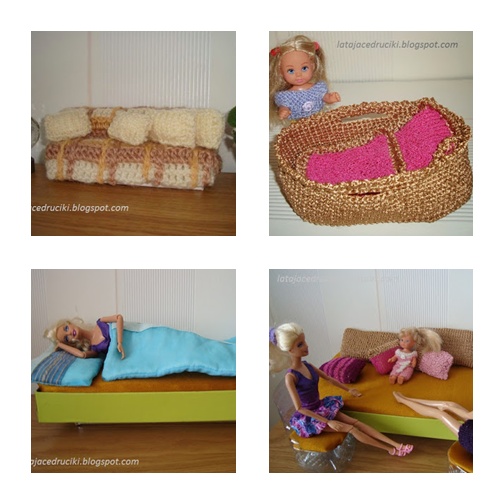 Ponieważ mebelki już były to trzeba zapełnić szafę lalki . I był to rok strojenia Barbie ,dla której powstały : sukienki , spodenki , bluzeczki , sweterki , stroje kąpielowe i różne inne dodatki . Kreacji zrobiłam dosyć dużo i jest to moja duma gdyż każdy strój spełniał marzenia nowych właścicielek .