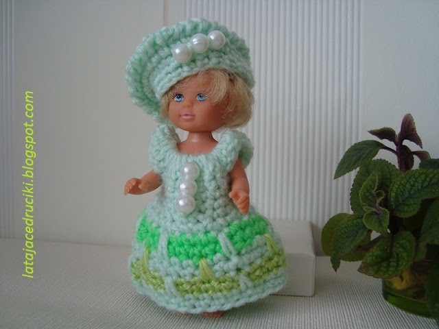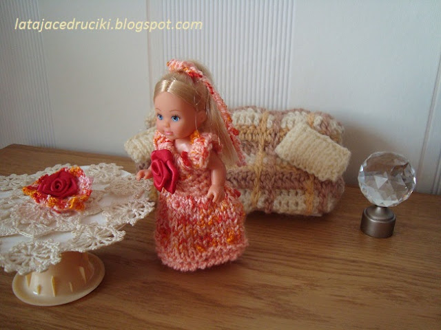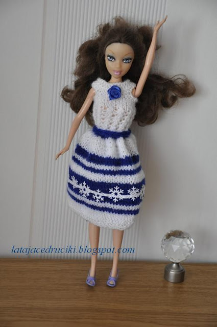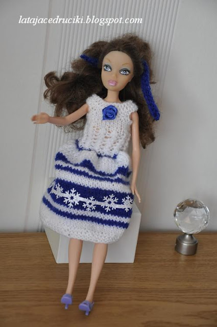 No i nic u mnie w Nowym Roku się nie zmieniło , znowu wskoczyłam w stroje dla lalek . Zaczęły się bale to i Barbie powinna mieć nową kreację . Strój w barwach zimowych , inspirowany padającym śniegiem . Jeszcze miał być szal ale jakoś tak pomysł mi mignął i wyparował . No nic może następnym razem dorobię .