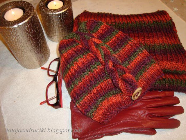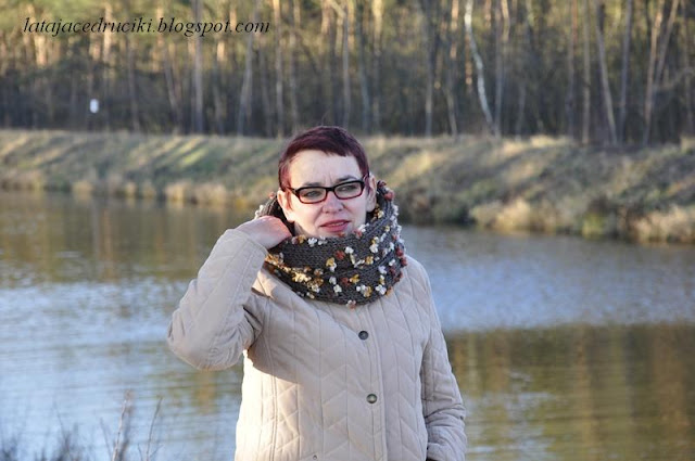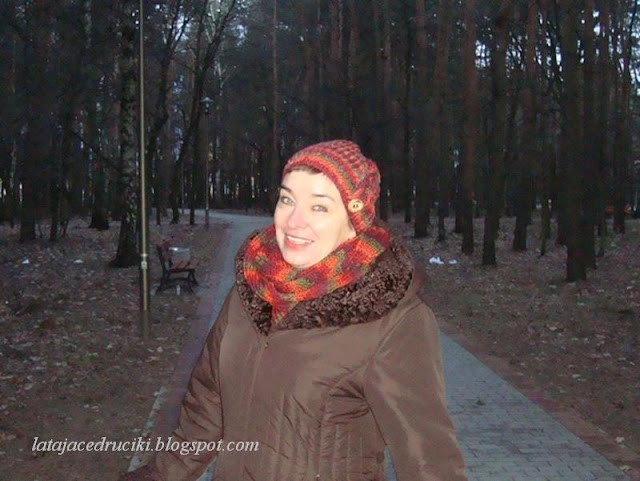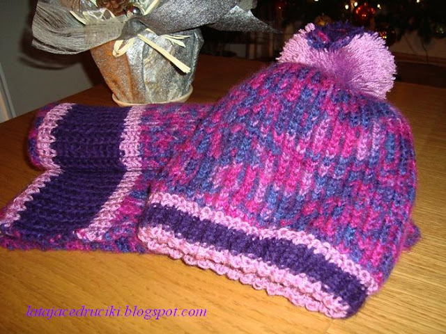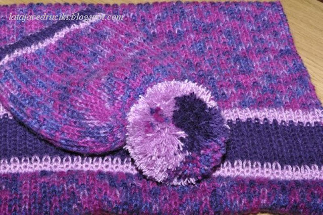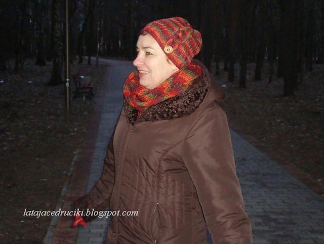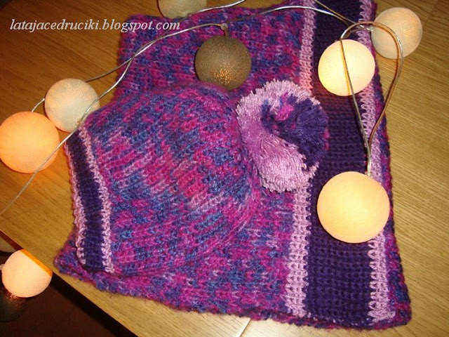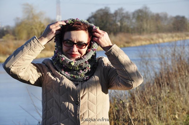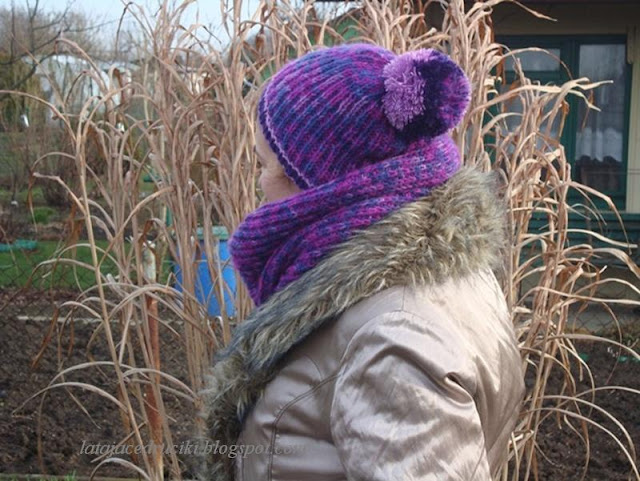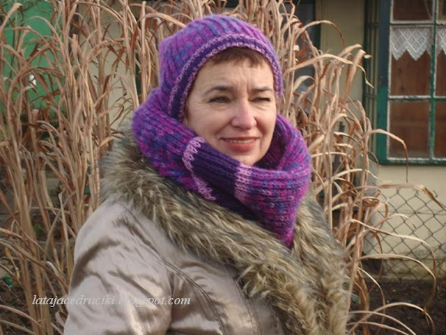 Witam Was w ten zimowy czas ! Aj jak cudnie biało się zrobiło , uwielbiam ten biały widok . Jednak ten fajny taki czysty widok łączy się i z mrozem , no i co tu dużo mówić " Roszpunka " okazała się za cienka na te poranne przymrozki . Szybciutko chwyciłam za włóczkę ,która już od dłuższego czasu leżała bez celu i proszę ! Czapka jest gruba podwójna i żadem mróz jej nie jest straszny . Do czapy powstał komin , który dobrze zabezpiecza szyję , a jak potrzeba to i głowę okryje .