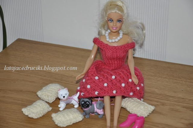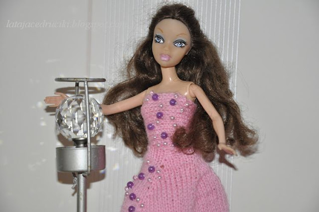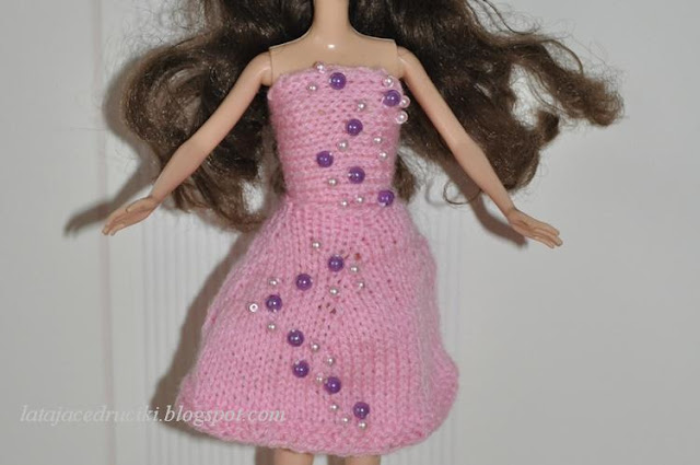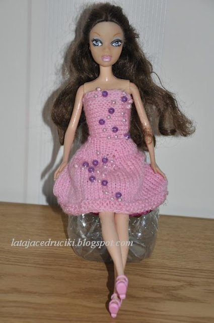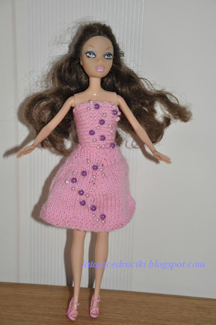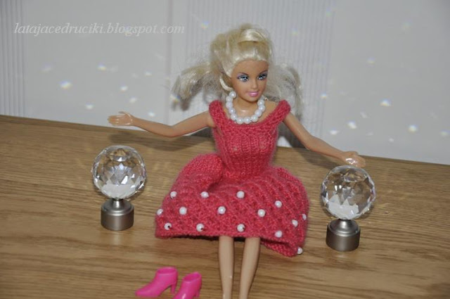 U mnie jak zwykle niczym niekończący się nudny serial - kolejny strój dla Barbie . Miała być elegancka sukienka z perełkami , no to jest . Hm modelka zmęczona , nogi bolą to i usiadła na chwilkę . Koniec przerwy , wracamy do pracy ! Pozujemy dalej .