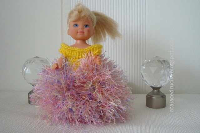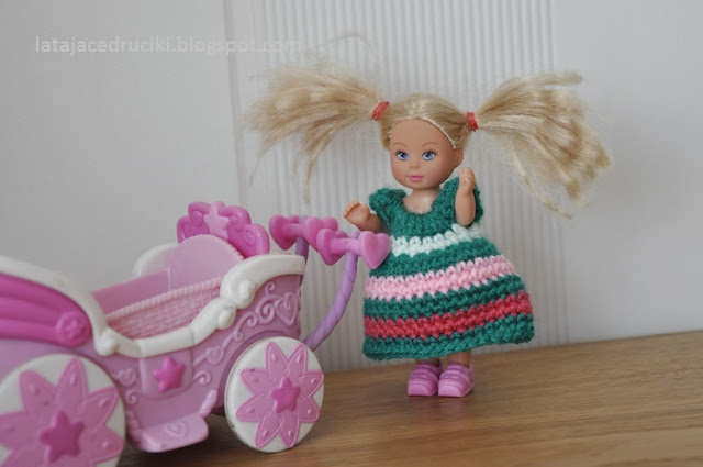 Tym razem jednak ramiączka są szersze , a gumka przy dekolcie pozwala na łatwe ubieranie laleczki .