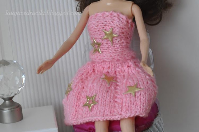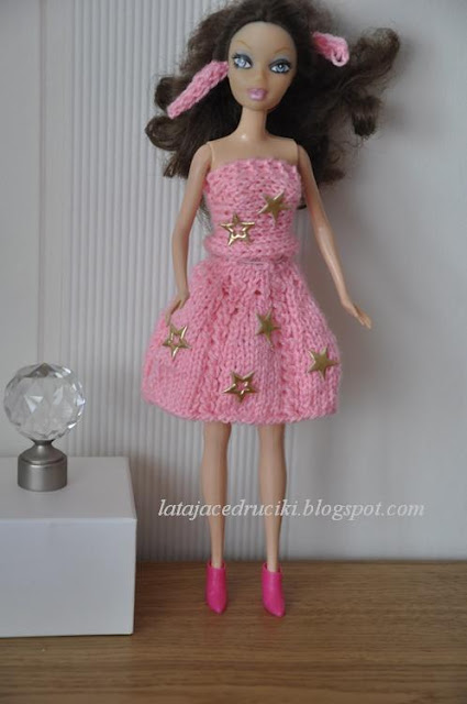 Mała panienka poprosiła mnie o zrobienie ubranek dla swojej lalki . Znacie mnie już z tego , że nie powiem dziecku NIE . Ponieważ mała jest niesamowitą " Gwiazdą " i uwielbia kolor różowy to i strój dla lalki nie mógł być inny .