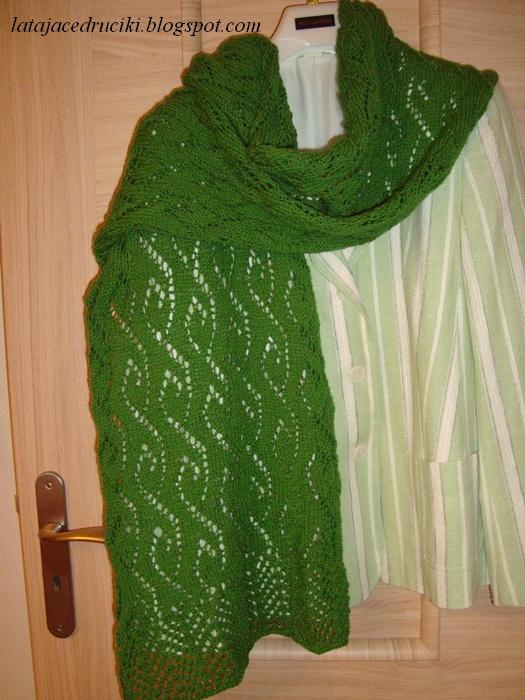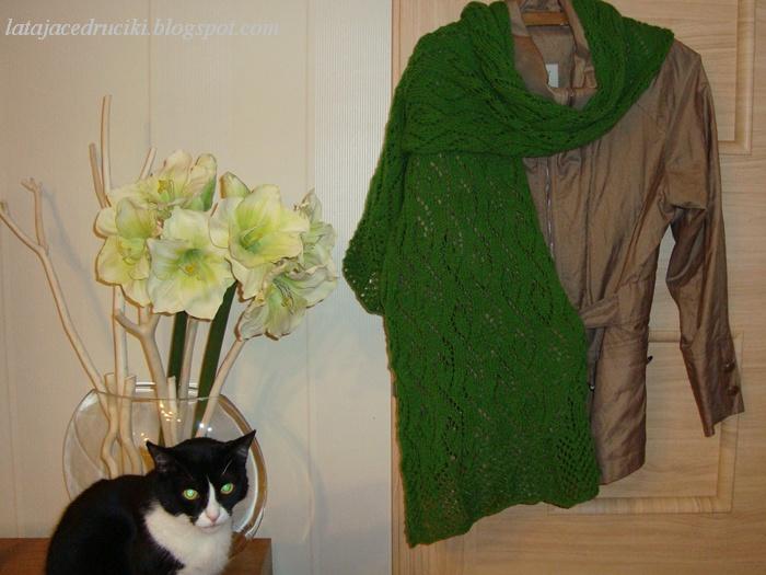 Któregoś dnia przyszła do mnie koleżanka i ze słowami " zrób sobie coś z tego " położyła na stół 3 motki Kocurka . Włóczka poleżała troszeczkę, aż któregoś dnia niczym pomysłowy Dobromir krzyknęłam " Wiem ! Zrobię z tego szalik " Zaczęłam szukać jakiegoś fajnego wzoru i gdy zobaczyłam TUTAJ żółty szal to natychmiast wiedziałam, że to jest to. I tak powstał mój czwarty szal - całkowicie wiosenny. Jaka była radość i zdziwienie koleżanki gdy jej go zaniosłam to możecie sobie tylko wyobrazić i powiem Wam - ona się nim opatula.