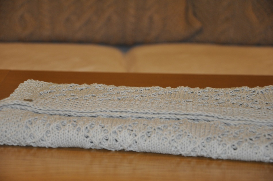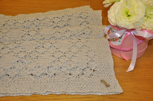 Letni bawełniany kocyk dla maluszka zrobiony został z włóczki Jeans - YarnArt kolor 49. Na wielkość 80 x 60 cm wyszło 6 moteczków. Druty 4 mm.