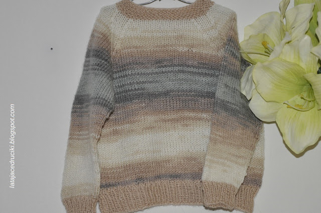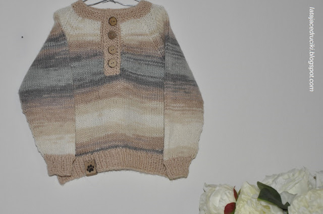 Kolejny sweterek dla maluszka powstał z włóczki Alize Baby Wool Batik. Bardzo fajnie się robiło bo włóczka mięciutka, delikatna.Wykorzystałam wzór A Simple Baby Pullover by Erica Kempf Broughton TUTAJ kolor 4726 druty 4 mm