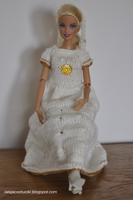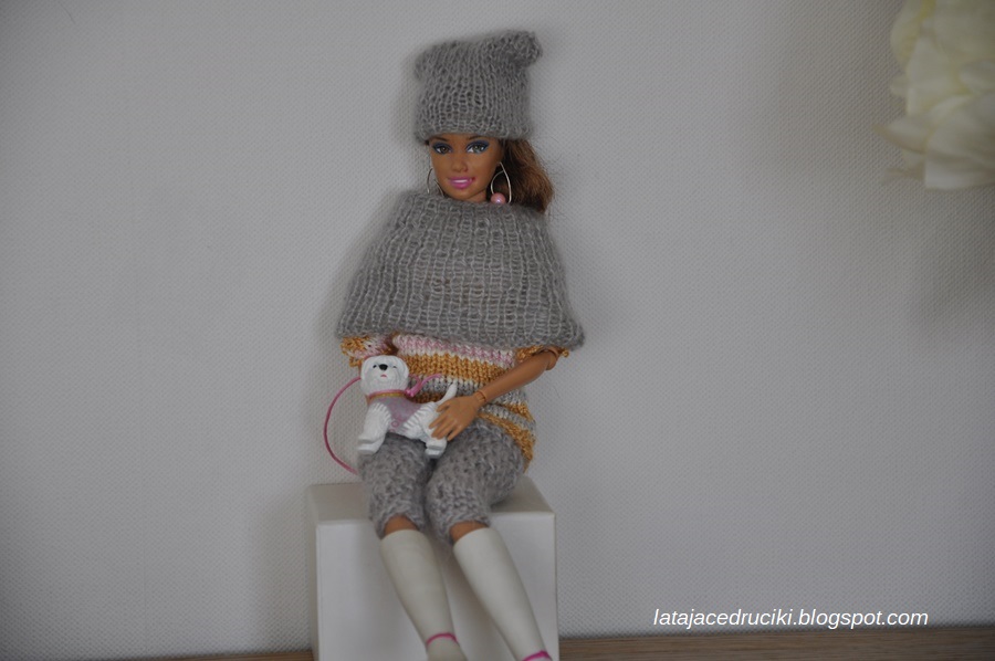 Troszkę na chłodniejsze dni, troszkę dla szpanu - jedno jest pewne, przyszedł pomysł do głowy.Oczy dojrzały odpowiednie kłębuszki, a ręce wykonały. I jest nowy strój dla Barbie, a ja miałam miłą odskocznię od codziennych udziergów.