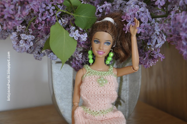 Lato się zbliża wielkimi krokami to i w szafie laleczek muszą pojawić się nowe ubranka. Tym razem mała panienka zamówiła sobie różową sukienkę z "piórami".