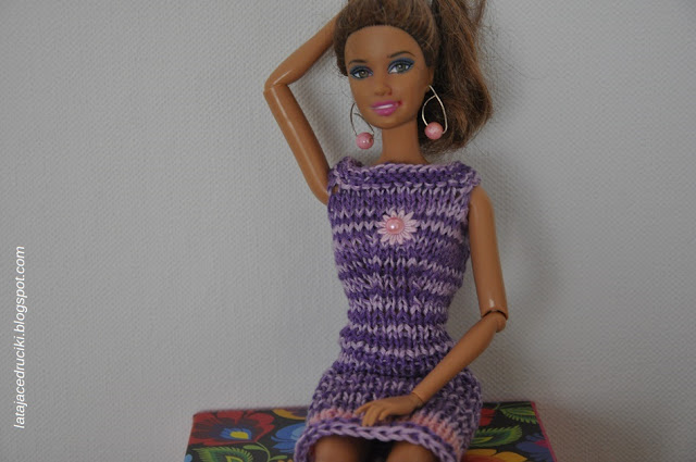 Ciociu! Ciociu! Narysowałam sukienkę dla Barbie,czy zrobisz mi taką? No i jak tu nie zrobić. Wygrzebałam kordonek z fioletem i przystąpiłam do pracy. Jak myślicie czy młoda panienka będzie zadowolona?