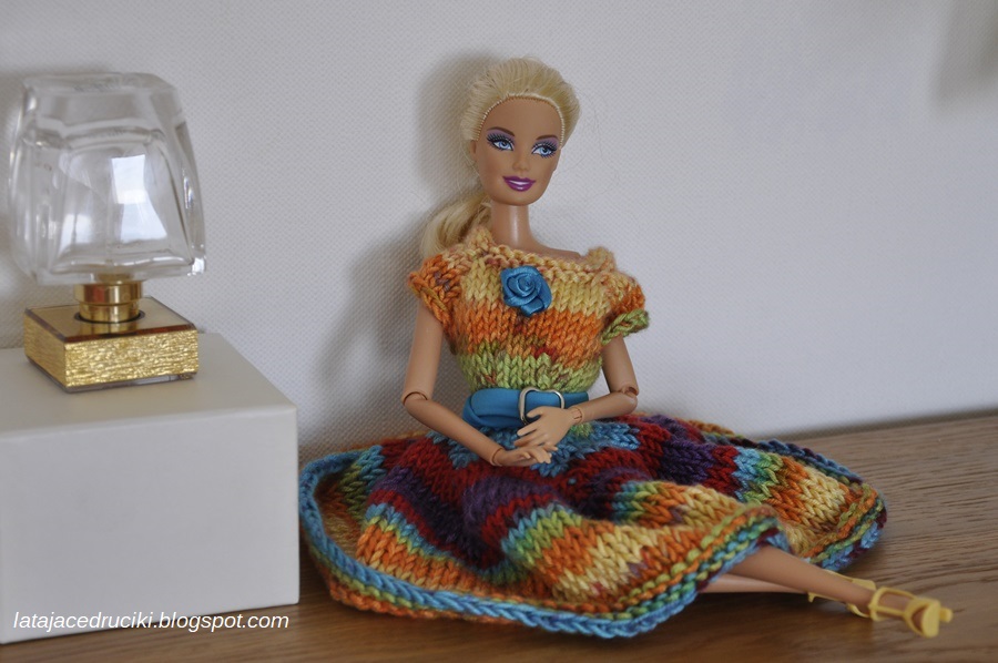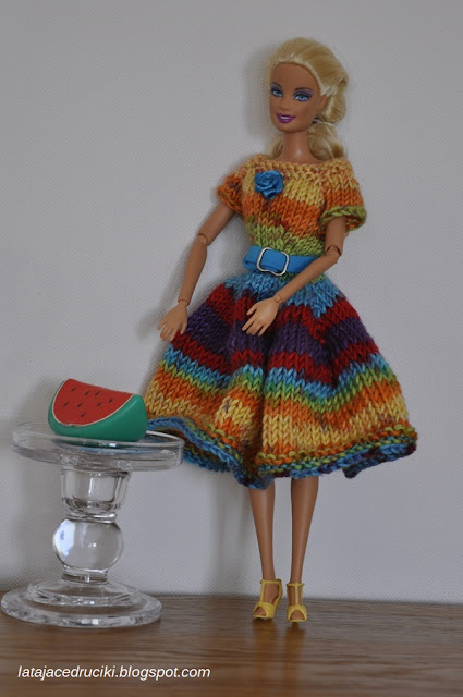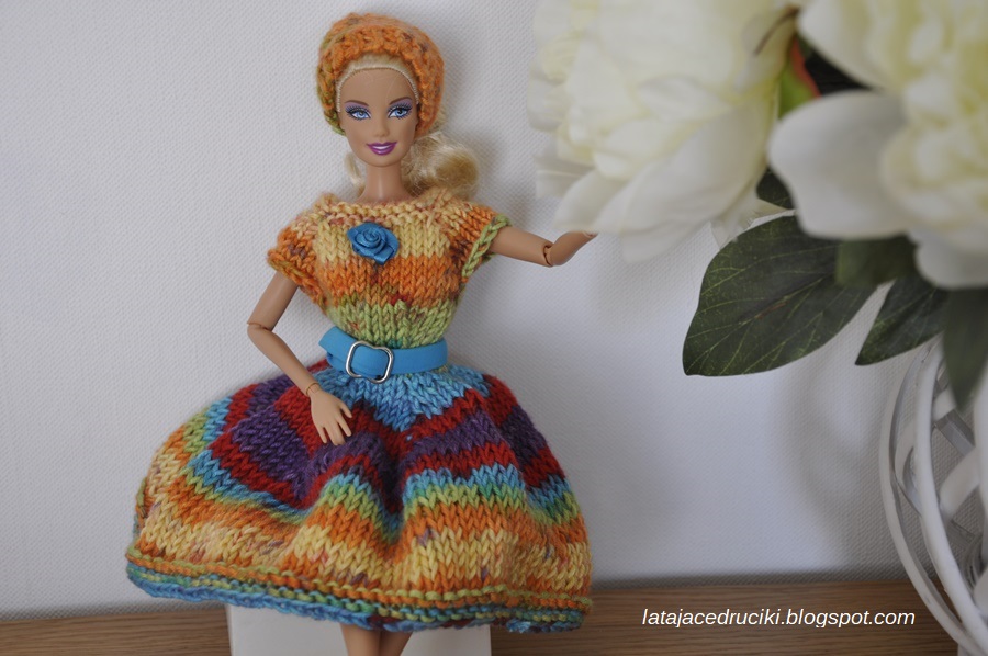 Na tak kolorową wiosnę, która jest za oknem, nie może zabraknąć nowej kreacji. Laleczka bardzo zadowolona z tęczowej sukienki, a jej właścicielce uśmiech nie znika z twarzy.