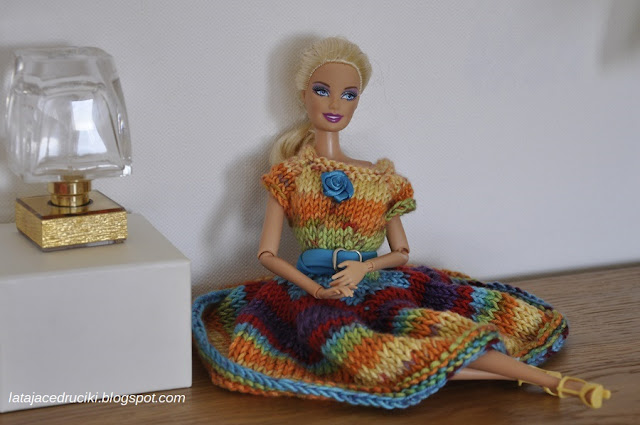 Troszkę na chłodniejsze dni, troszkę dla szpanu - jedno jest pewne, przyszedł pomysł do głowy.Oczy dojrzały odpowiednie kłębuszki, a ręce wykonały. I jest nowy strój dla Barbie, a ja miałam miłą odskocznię od codziennych udziergów.